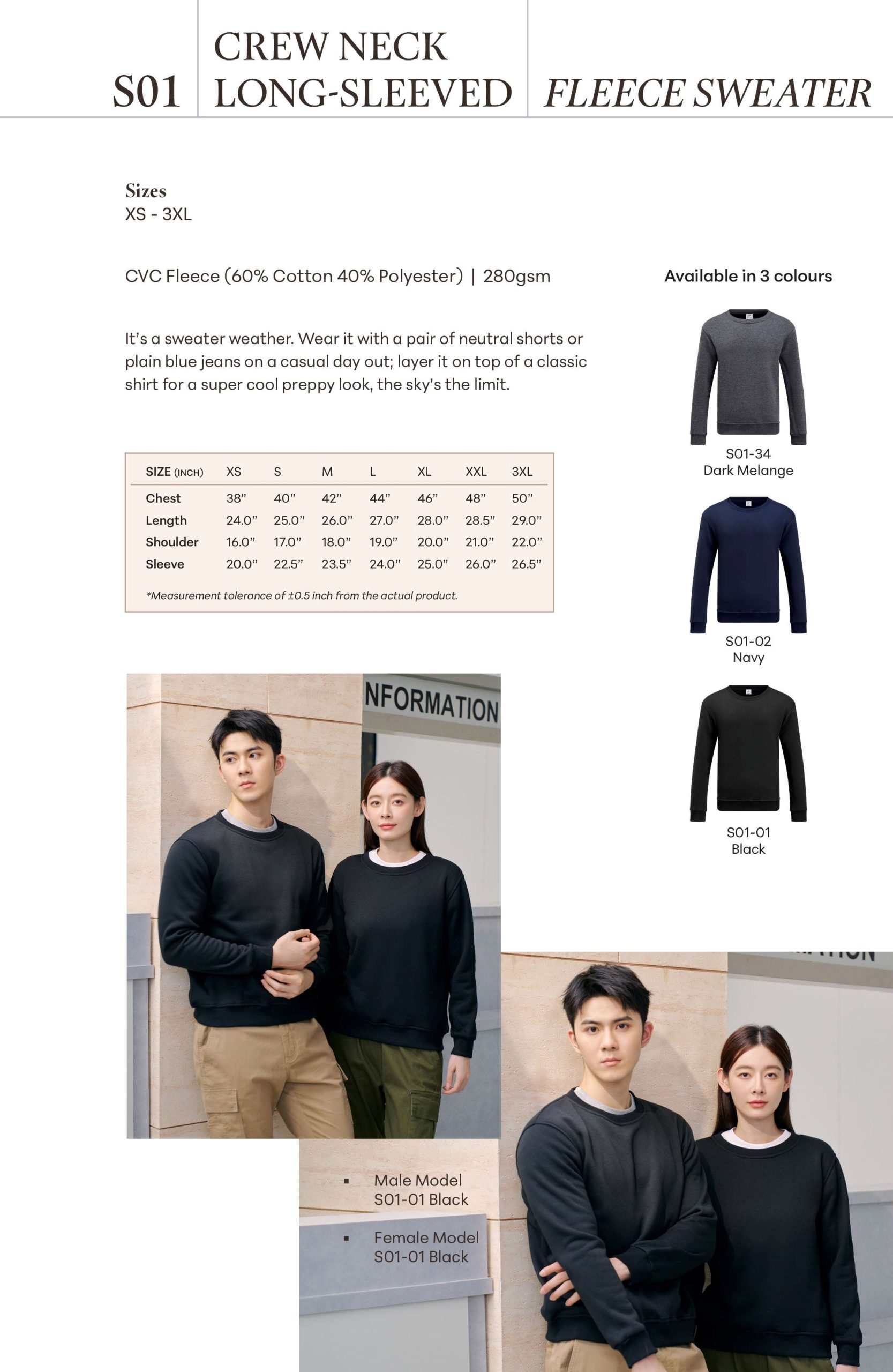 XS – 3XL